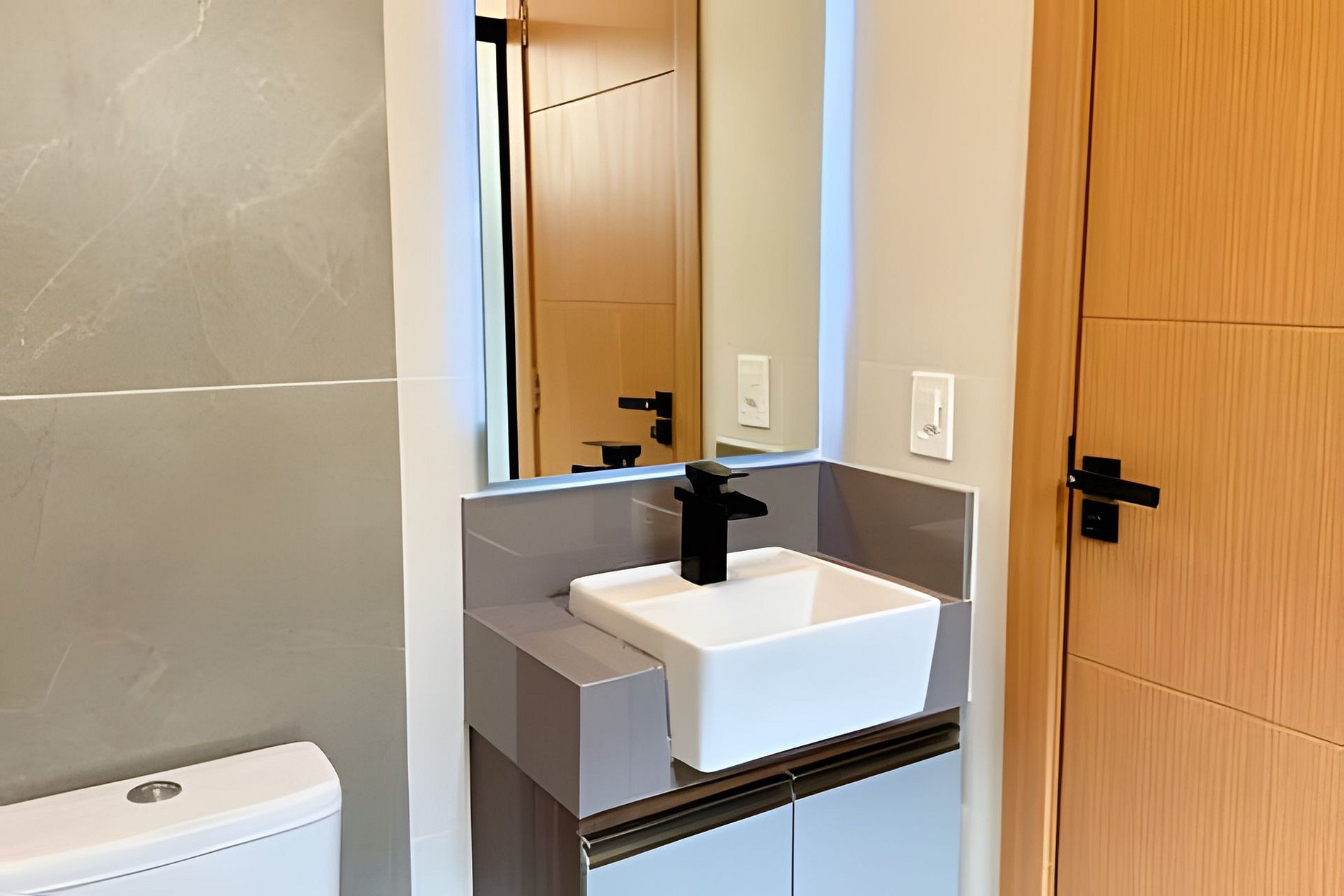 A iluminação em LED e o espelho amplo ajudam a ampliar a sensação de espaço. A localização é excelente, a apenas 10 minutos de caminhada da Estação Belém (Linha Vermelha), com fácil acesso ao centro e aos principais pontos turísticos.